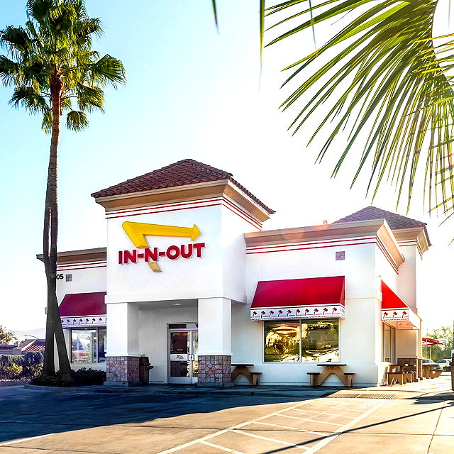 | In N Out Burger is a classic California-based burger chain serving hamburger, french fries and shakes. | |
