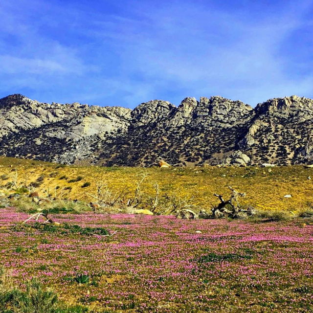 | Bird watching and wildflower viewing are exceptional because the road and trails provide access to so many habitats, such as desert shrub, riparian, Joshua tree woodland, and pine forest. | |