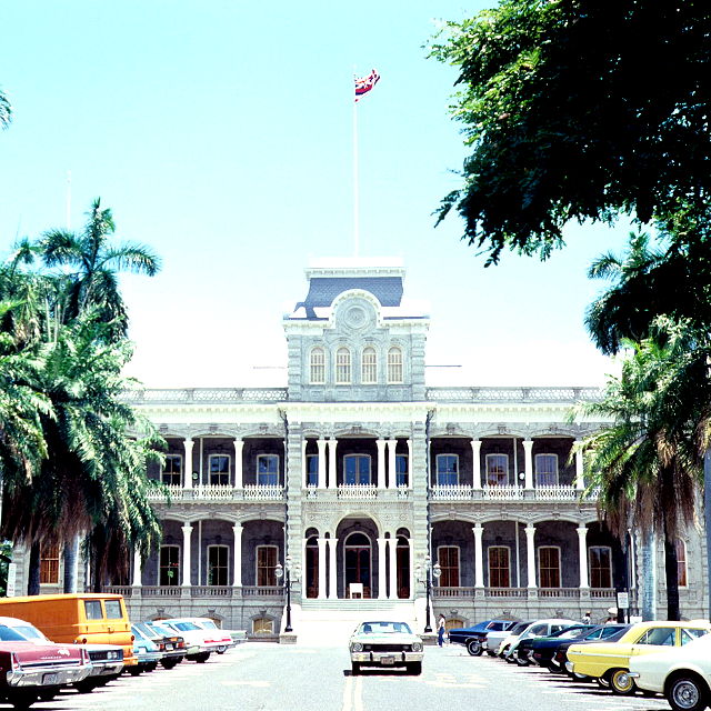 | Registered as a National Historic Landmark since 1962 and the only official royal residence in the United States, the Palace is one of the most recognizable buildings in Hawai'i. Meticulously restored to its former grandeur, ʻIolani Palace tells of a time when their Majesties, King Kalākaua and his sister and successor, Queen Lili'uokalani walked the grand halls. | |
