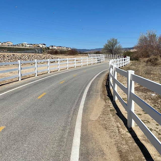 | Hiking, equestrian, walking and biking opportunities on trail. This four-mile riding and walking path with the historic, 1898 railroad trestle bridge adjacent to Magic Mountain Parkway, connects to the South Fork Trail. The bridge was placed in its current location after the St. Francis Dam disaster in 1928. | |