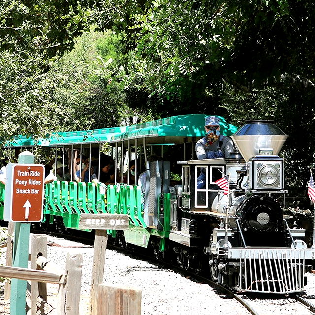 | The train ride is approximately 12 minutes long and takes visitors through some of the park's most scenic areas, providing a fun and unique way to experience the park's natural beauty. Along the way, visitors can see wildlife, including ducks, geese, and squirrels, as well as enjoy views of the nearby Orange County Zoo. In addition to the train ride, the Irvine Park Railroad also offers other activities for children, such as pony rides, bounce houses, and a miniature carnival. There are also picnic areas and a snack bar where visitors can enjoy food and drinks. Overall, the Irvine Park Railroad is a fun and entertaining destination for families with young children, and offers a unique way to experience the beautiful scenery of the Irvine Regional Park. | |