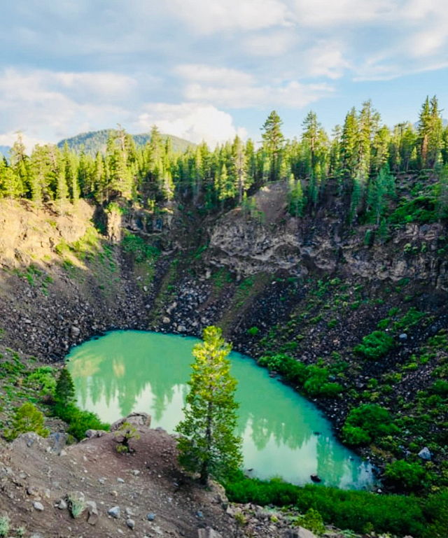 | Six hundred years ago, a massive explosion heated rock and ground water, causing a large blast zone. Three craters were formed. Today, snow melt and rainwater create emerald green pools in the craters. Accessibility: 1.4 miles (2.25 km) round-trip uphill hiking trail. Directions: From the Mammoth Scenic Loop follow signs to Inyo Craters. Take 1.3 mile (2km) unpaved road to trailhead. | |