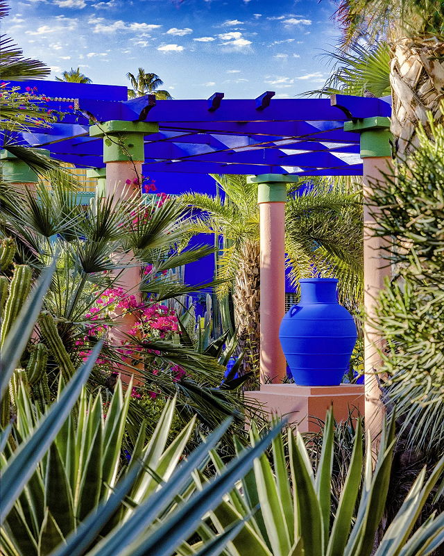 | Jardin Majorelle, located in Marrakech, Morocco, is a famous botanical garden and artistic landscape that was designed by the French painter Jacques Majorelle. The garden is renowned for its vibrant blue color scheme, diverse plant collection, and its historical connection to the fashion designer Yves Saint Laurent. | |