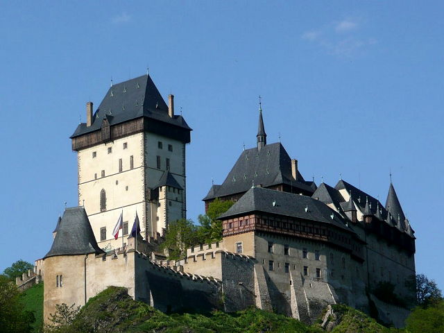 | Karlštejn Castle is a medieval fortress located in the Czech Republic, specifically in the village of Karlštejn, approximately 30 kilometers southwest of Prague. The castle was founded in 1348 by Charles IV, King of Bohemia and Holy Roman Emperor. The castle served as a place for safekeeping the imperial coronation jewels, holy relics, and other royal treasures. | |