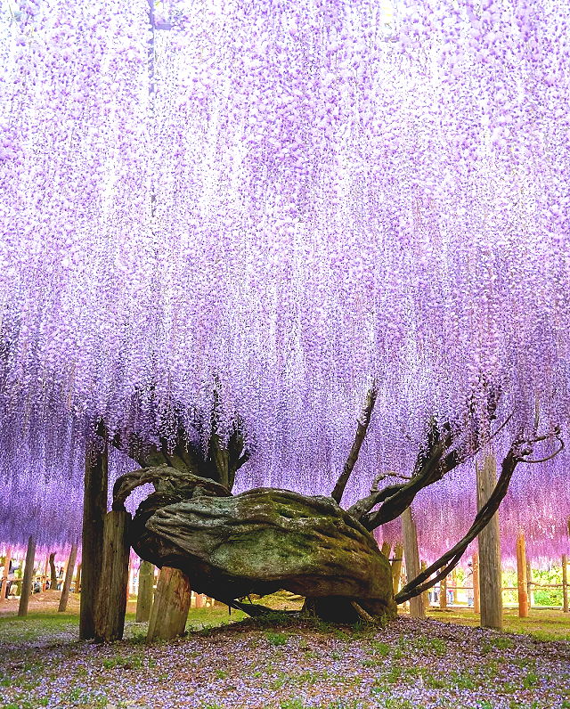 | - Wisteria Tunnels: One of the most famous features of the Kawachi Wisteria Garden is its wisteria tunnels. These tunnels are formed by wisteria vines that are trained to grow overhead, creating a canopy of cascading flowers that visitors can walk through. - Colorful Blooms: The garden is known for its wisteria flowers that come in various colors, including shades of purple, pink, white, and blue. The different colors create a mesmerizing visual spectacle. - Seasonal Beauty: The best time to visit the Kawachi Wisteria Garden is during the wisteria blooming season, which typically occurs in late April to early May. During this time, the garden is transformed into a colorful paradise of blooming wisteria. - Variety of Wisteria: The garden features several different species of wisteria, each with its unique characteristics and color variations. - Other Flowers: In addition to wisteria, the garden is also adorned with other flowering plants and trees, creating a harmonious and vibrant environment. - Design and Layout: The garden is carefully designed to provide a serene and picturesque setting. Visitors can stroll along paths that wind through the wisteria tunnels, over bridges, and around ponds. - Photography: The Kawachi Wisteria Garden is a favorite spot for photographers due to its incredible colors and unique structures. - Crowds and Timing: The garden's popularity means that it can get crowded, especially during peak bloom periods. To avoid large crowds, visiting on weekdays or early in the morning might be a good idea. - Ticketing: The garden operates on an admission fee, and tickets might need to be purchased in advance during peak bloom periods. The Kawachi Wisteria Garden offers a sensory experience of beauty and tranquility, allowing visitors to immerse themselves in the captivating world of wisteria blooms. It's an example of Japan's affinity for creating harmonious and aesthetically pleasing gardens. | |