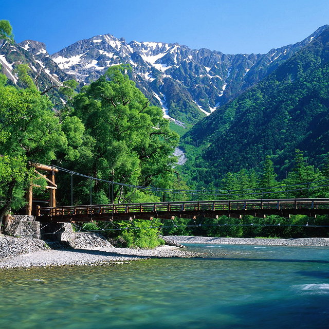 | - Kamikochi is surrounded by towering peaks such as Mt. Hotaka and Mt. Yakedake. The crystal-clear Azusa River flows through the valley, reflecting the surrounding mountains. It's especially beautiful during the autumn foliage season. - Famous Spots: Kappa Bridge, Taisho Pond and Myojin Pond. | |