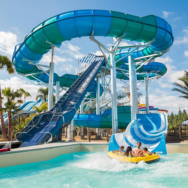 | Knott’s Soak City Waterpark is a 15-acre water park next to the Knott's Berry Farm theme park. The park offers a total of 22 speed, tube and body slides plus the 750,000-gallon Tidal Wave Bay wave pool; the one-third-mile Sunset River; and the three-story Beach House, featuring 200 water guns, nozzles, sprayers and other interactive surprises. | |