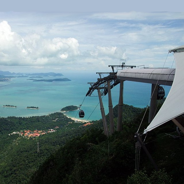 | The Langkawi Cable Car, also known as Langkawi SkyCab, is one of the major attractions in Langkawi Island, Kedah, Malaysia. It provides an aerial link from the Oriental Village at Teluk Burau to the peak of Gunung Machinchang, which is also the location of the Langkawi Sky Bridge. The total length is 2.2 km (1.4 mi), with a journey time from the base to the top of around 15 minutes. | |