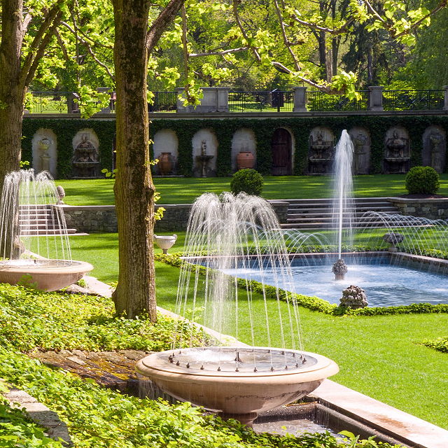 | - Gardens and Conservatories: Longwood Gardens spans over 1,000 acres and features a diverse array of gardens, including formal flower gardens, water gardens, and woodland areas. The conservatories house a vast collection of plants from around the globe, and visitors can explore different climates and ecosystems within these glass structures. - Fountains: Longwood Gardens is famous for its spectacular fountain displays. The Main Fountain Garden, in particular, is a centerpiece with intricate water features, jets, and lighting that are often choreographed to music during special events. - Events and Performances: The gardens host various events and performances throughout the year. This includes concerts, seasonal flower shows, and special light displays during holidays. - Historic Du Pont Estate: Longwood Gardens is situated on the former estate of Pierre S. du Pont, a member of the prominent Du Pont family. The property includes the stunning Peirce-du Pont House, which serves as a historical centerpiece. - Educational Programs: Longwood Gardens is dedicated to education in horticulture and offers a variety of educational programs, workshops, and lectures for visitors of all ages. | |