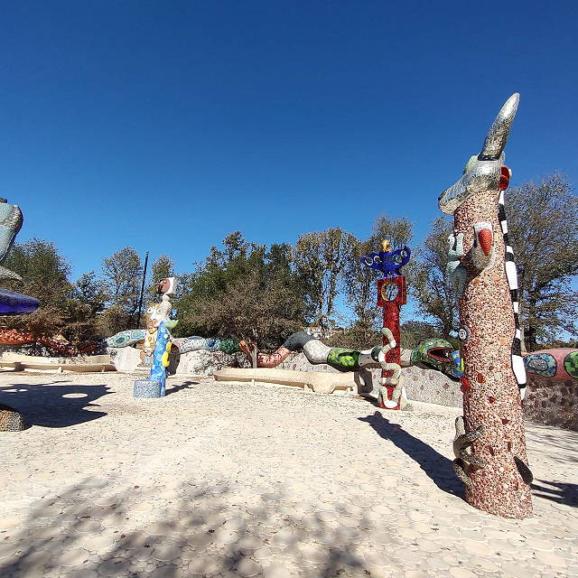 | Queen Califia's Magical Circle is the only American sculpture garden and the last major international project created by Niki de Saint Phalle (born France, 1930-2002). The garden bears the brilliant, unique mosaic ornamentation that is an unmistakable part of Saint Phalle's later work. | |