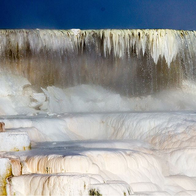 | Mammoth Hot Springs is a large complex of hot springs on a hill of travertine in Yellowstone National Park adjacent to Fort Yellowstone. | |
