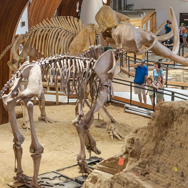 | - Geological Formation: The site is situated in a sinkhole that formed approximately 26,000 years ago. It was a natural trap where numerous mammoths and other animals became stuck and were unable to escape. - Fossils: The Mammoth Site has yielded a remarkable collection of Ice Age fossils, including the remains of Columbian and woolly mammoths, as well as the bones of other prehistoric animals such as giant short-faced bears, camels, wolves, and more. - Excavation: A portion of the site has been carefully excavated, revealing numerous mammoth skeletons in situ, meaning they are still in the positions in which they were found. Visitors to the site can see ongoing excavations and witness the work of paleontologists. - Museum: The Mammoth Site features an on-site museum where visitors can learn about the Ice Age, the geology of the site, and the animals that once roamed the area. The museum houses fossils, exhibits, and interactive displays. - Guided Tours: Guided tours of the excavation area and the museum are available. Knowledgeable guides provide insights into the scientific significance of the site and its history. - Educational Programs: The Mammoth Site offers educational programs for schools and groups, as well as outreach and distance learning opportunities. - Research: The site is actively used for research in paleontology and is considered an important scientific resource. It has contributed valuable information about the biology and behavior of mammoths and other Ice Age animals. - Location: The Mammoth Site is located in Hot Springs, South Dakota, in the southwestern part of the state. The Mammoth Site in Hot Springs, South Dakota, offers a unique opportunity for visitors to explore the prehistoric past and gain insights into the world of the Ice Age megafauna. It's both an educational and scientific treasure for those interested in paleontology and natural history. | |
