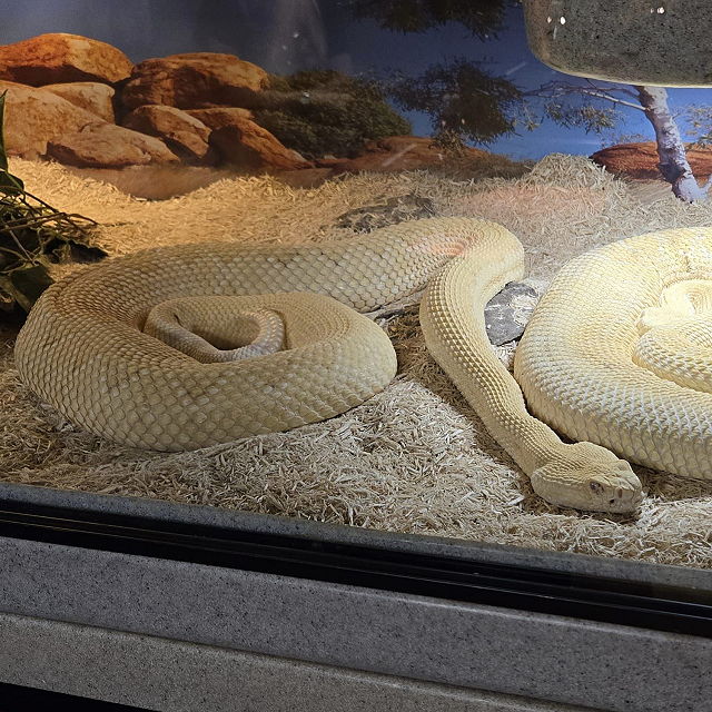 | Enjoy the coolest collection of snakes around in our new and improved reptile room. From creepy crawlie tarantulas to a 12 foot albino python. Eastern diamondback rattlesnakes, rhino vipers, jumping vipers, albino cobras and so much more. Other reptiles you will see include gila monsters, bearded lizards, rhino iguanas, and leopard geckos. | |