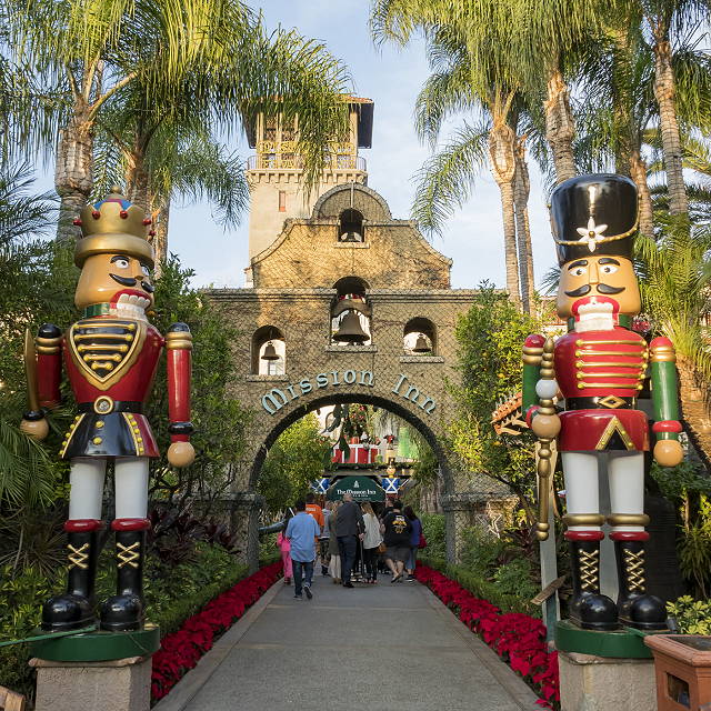 | The Mission Inn Museum features exhibitions examining the hotel’s history and lasting impacts on the Riverside community and beyond. The museum’s collection is significant in demonstrating the periods of Mission Inn development from its beginning as an adobe boarding house in 1876 to the present. | |