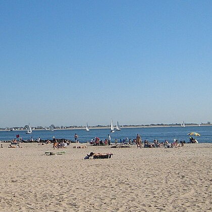 | Manhattan Beach Park on Brooklyn's southern tip is a popular summertime destination for people from all over New York City. As the weather heats up, families pack picnic baskets and come out to barbeque, loll on the sand, and swim in the waves. | |