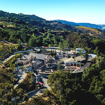 | This estate boasts a quaint stone winery building, a lush open-air theater, and picturesque gardens, making it a popular destination for both wine tastings and live music events. Mountain Winery is renowned for its summer concert series, which features performances by major artists in a cozy outdoor setting with stunning views of the Santa Cruz Mountains. Visitors can enjoy wine tastings, take guided tours of the vineyards and winery, and experience fine dining at the on-site restaurants. | |