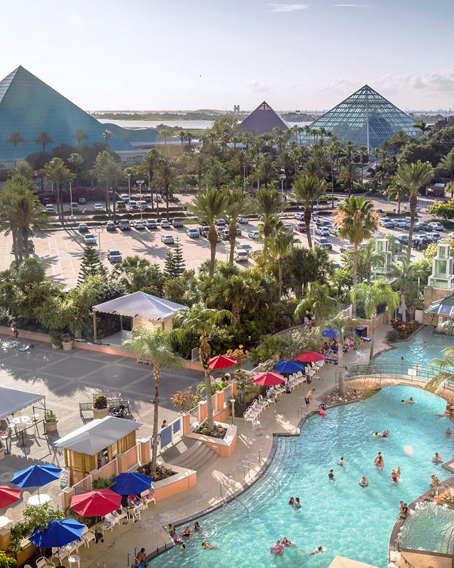 | Moody Gardens features three main pyramid attractions: the Aquarium Pyramid, the Rainforest Pyramid, and the Discovery Pyramid. Palm Beach, a seasonal summer attraction, features white sand imported from Florida and many common water-park activities. | |