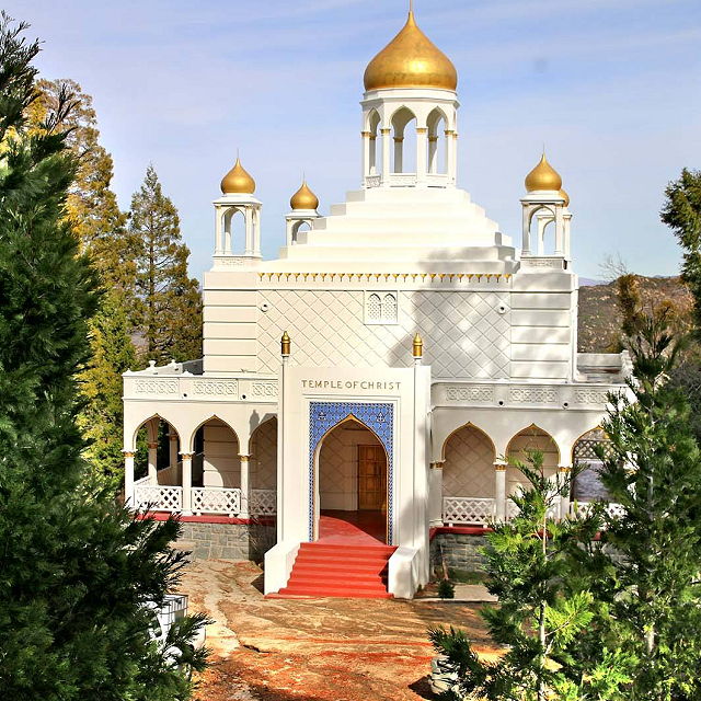| The Mozumdar Temple bears a striking resemblance to the Taj Mahal, with one notable difference; this temple in the middle of the California forest. The peculiar structure is thanks to one man, A.K Mozumdar, a spiritual teacher who had a dream to build a temple where people of all religious faiths could come together and worship. | |