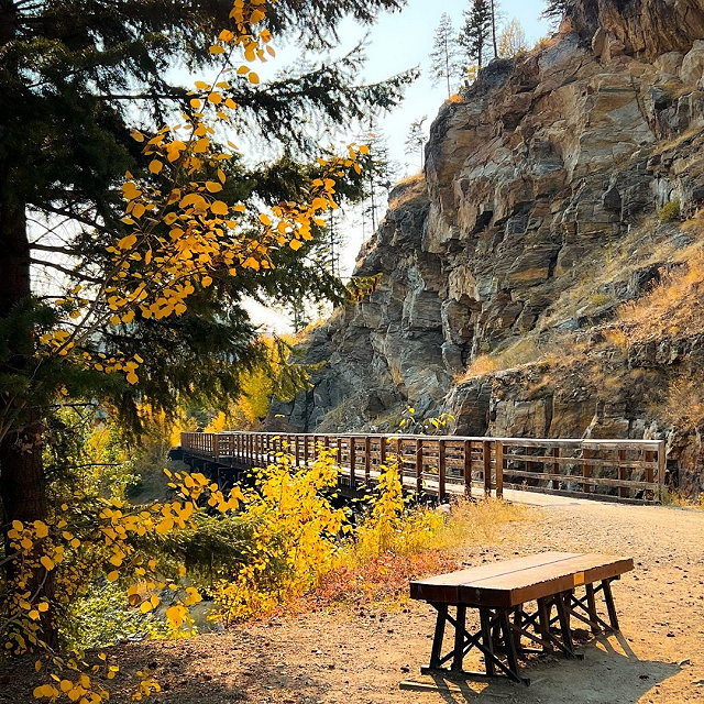 | The park has a large exclusion in the centre that locals refer to as the “donut.” This excluded area is Crown Land under Forest Tenure licences. Features such as the dramatic escarpment of Little White Mountain, the scenic Myra Canyon, a number of existing trails and the historic Kettle Valley Railway, with its trestles and tunnels, have provincial recreational appeal and provide long term recreational opportunities for the increasing Okanagan Valley population | |