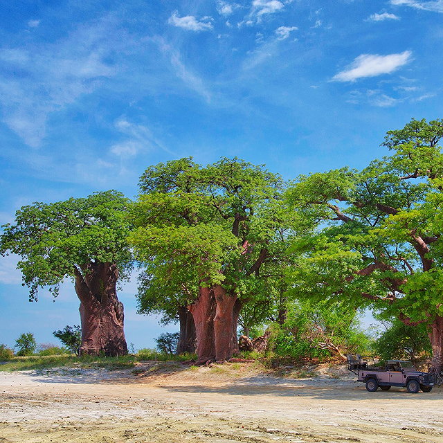 | The park is especially famous for its wildlife, which includes migratory herds of zebras and springboks that gather here during the rainy season (typically from November to April) to graze on the lush, green grass. This migration attracts predators such as lions, cheetahs, and leopards, making the park an exciting destination for game viewing. Other wildlife includes elephants, giraffes, jackals, and various antelope species, along with a rich array of birdlife. One of the park's most iconic landmarks is the Baines’ Baobabs, a cluster of seven massive baobab trees on Kudiakam Pan, named after the 19th-century artist Thomas Baines, who painted them during his travels. These ancient baobabs have barely changed over centuries, and their surreal presence against the vast pan landscape makes them a unique sight. Nxai Pan offers a remote, tranquil safari experience with its vast, open spaces and seasonal diversity, providing a unique contrast to more traditional game parks in Botswana. | |
