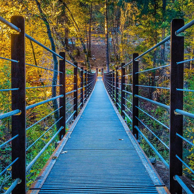 | Nisenan Tribute Site Trail Head memorializes the early contributions of native Nisenan and Chinese people to the history of this place. A suspension bridge spans a beautiful section of Deer Creek, connecting to the Environs Trail on the other side. | |