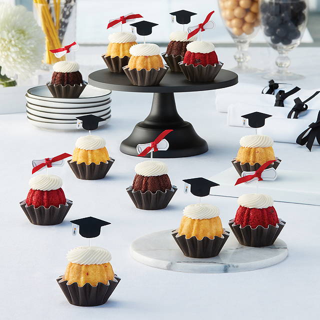 | Nothing Bundt Cakes are available in a variety of sizes to accommodate gatherings both large and small, from bite-sized Bundtinis, to miniature Bundtlets, to full-sized 8" and 10" cakes and even tiered cakes. | |