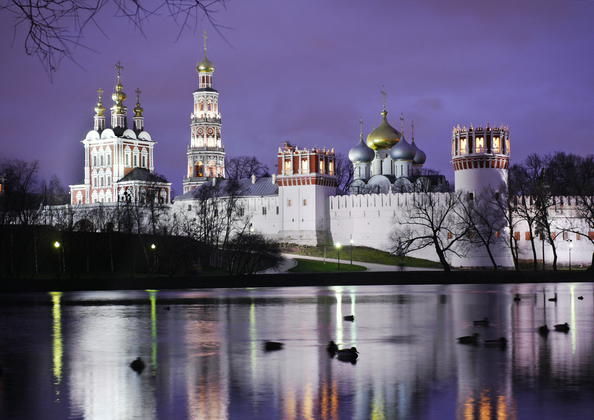 | The Novodevichy Convent, in south-western Moscow, built in the 16th and 17th centuries in the so-called Moscow Baroque style, was part of a chain of monastic ensembles that were integrated into the defence system of the city. | |