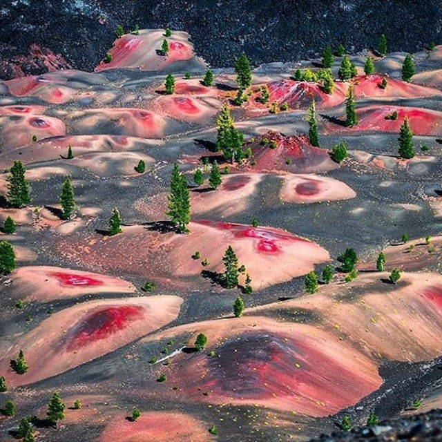 | The Painted Dunes are a unique natural feature located in the Lassen Volcanic National Park, in northeastern California. The dunes are situated in the Cinder Cone area of the park and are known for their striking colors, which range from deep reds and purples to bright oranges and yellows. | |