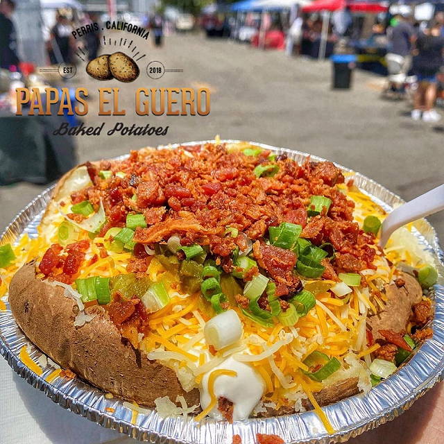 | Papas el guero is a Mexican restaurant located in Perris, Riverside County serving tacos and baked potatoes. | |