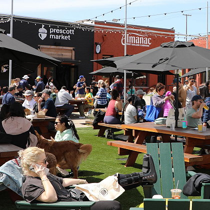 | Prescott Market in West Oakland, Oakland, California, at the corner of 18th & Peralta, is a local grocery store that serves the community with a wide variety of food and household items. It is also a community gathering place with delicious food and drinks. | |