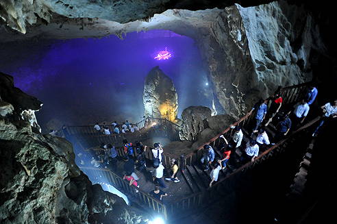 | Phong Nha-Ke Bang National Park is known for its spectacular limestone karst formations, underground rivers, and cave systems. The park also has a diverse ecosystem, with a range of flora and fauna, including many endemic species. Phong Nha Cave is 7,729 metres long and contains 14 grottoes, as well as a 13,969 metre underground river. While scientists have surveyed 44.5 kilometres of passages, tourists are only allowed to explore the first 1500 metres. It is the second biggest cave in Vietnam. Visitors to the park can explore the caves and karst formations on guided tours, which are available for a range of skill levels and interests. Popular caves to explore include Hang Tu La n, Hang En, and Hang Va. The park also offers opportunities for trekking, camping, and wildlife watching. Phong Nha-Ke Bang National Park is located approximately 500 kilometers south of Hanoi and is accessible by car, bus, or train. The park is a popular destination for adventure travelers and nature enthusiasts, and is considered one of Vietnam's top natural attractions. | |
