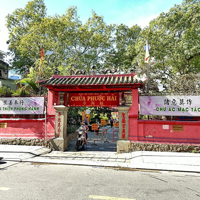 | Emperor Jade Pagodawas built by the Chinese community in 1909. It is also known from 1984 by the new Chinese name Phuoc Hai Tu± (Luck Sea Temple), and as the Tortoise Pagoda. It features atraditional Chinese architectural style and is decorated with intricate carvings, colorful dragons, and other religious motifs. The Ngoc Hoang Temple is a popular destination for tourists and locals alike, particularly during the Lunar New Year, when it is decorated with lanterns and other festive decorations. Visitors can explore the temple's various halls and altars, make offerings to the deities, and learn more about the history and culture of the Chinese community in Vietnam. Overall, the Ngoc Hoang Temple is a unique and fascinating cultural site in Ho Chi Minh City, and it offers a glimpse into the rich history and traditions of the city's Chinese community. | |