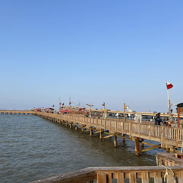 | The Pirate's Landing Fishing Pier in Port Isabel, Texas, is one of the longest fishing piers in Texas and a beloved spot for anglers and sightseers alike. Located near the base of the Queen Isabella Causeway, which connects Port Isabel to South Padre Island, this pier offers visitors easy access to prime fishing grounds in the Lower Laguna Madre Bay. | |