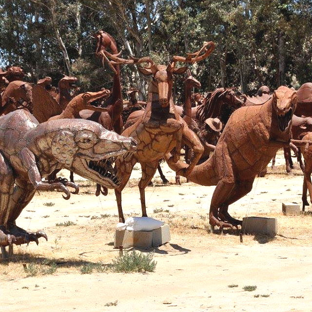 | Ricardo Breceda's Art Gallery, located in Aguanga, California, showcases the remarkable metal sculptures created by artist Ricardo Breceda. His sculptures are often large-scale and depict various creatures, including dinosaurs, mythical beasts, and historical figures. Breceda's work has gained widespread recognition and has become a popular attraction in the area. | |
