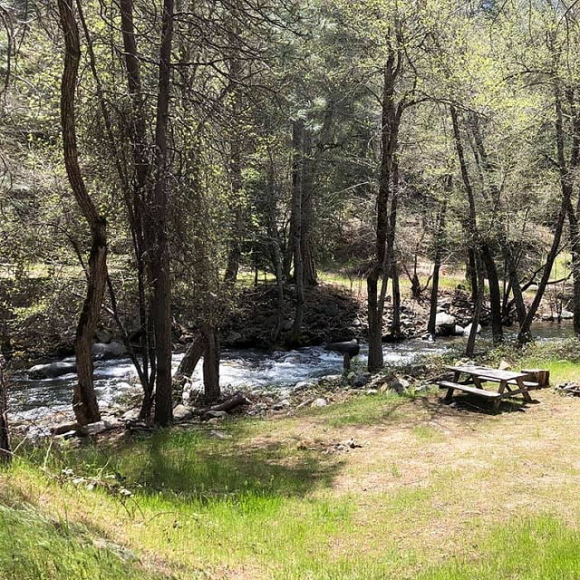 | River Ranch Campground is part private, part public. The private sites on River Ranch Campground are open; the public sites in Hacienda Campground remain closed. It features tent camping, camping trailer, picnic tables and toilets. | |