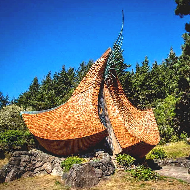 | James Hubbell, artist and architectural designer, is the creative genius who combined local natural materials with gifted local contractors, craftsmen, and artisans. The chapel is protected by a carefully designed native habitat that is the product of several talented landscape planners. It is maintained by guardian volunteers of the chapel. Open daily to the public, 365 days a year from sunrise to sunset. | |