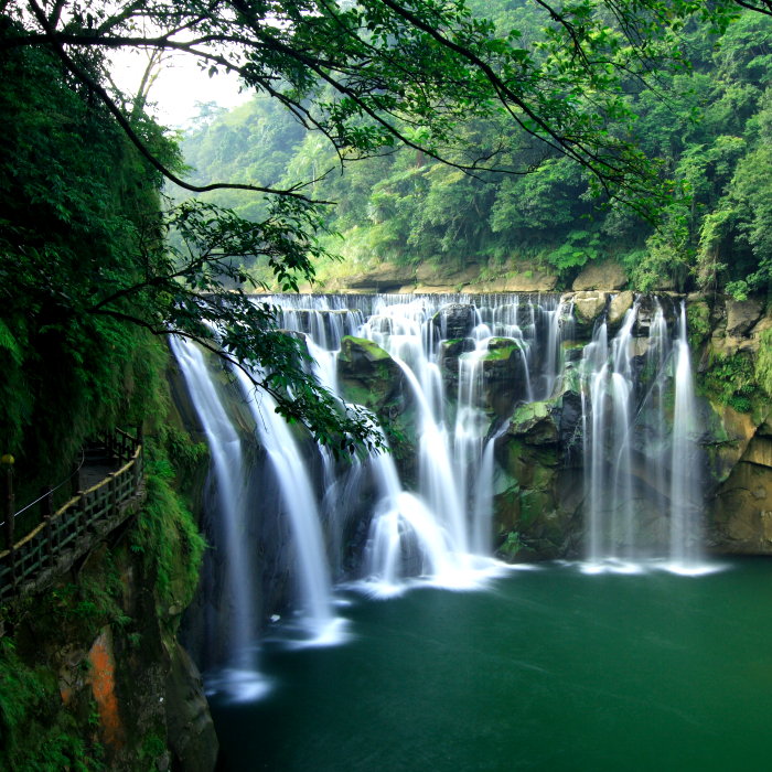| Here are some key points about Shifen Waterfall: - Majestic Waterfall: Shifen Waterfall is often referred to as the "Little Niagara of Taiwan" due to its grandeur and power. With a height of approximately 20 meters (66 feet) and a width of 40 meters (131 feet), the waterfall creates a magnificent cascade of water that plunges into the Keelung River. The sight and sound of the rushing water are awe-inspiring. - Natural Scenery: The waterfall is set within a scenic area characterized by lush forests and dramatic cliffs. The surrounding nature provides a tranquil and picturesque backdrop, making it a perfect place for nature lovers and photographers. - Shifen Old Street: Shifen Waterfall is located near Shifen Old Street, a historic district known for its charming railway tracks, traditional red lanterns, and nostalgic atmosphere. Visitors can stroll along the railway tracks, release sky lanterns, and explore the shops and food stalls that line the street. It's a great opportunity to experience local culture and sample delicious street food. - Sky Lanterns: One of the most unique aspects of visiting Shifen Waterfall is the chance to participate in the tradition of releasing sky lanterns. Visitors can write their wishes or messages on colorful lanterns and release them into the sky, symbolizing the release of worries and the hope for a better future. It is a popular activity that attracts many tourists to the area. - Hiking Trails: For those who enjoy hiking, there are several trails in the vicinity of Shifen Waterfall that offer opportunities to explore the surrounding natural beauty. The trails take you through forests, along rivers, and to scenic viewpoints where you can enjoy panoramic views of the landscape. - Evening Illumination: In the evenings, Shifen Waterfall is beautifully illuminated, creating a magical ambiance. The combination of the cascading water and the colorful lights enhances the visual spectacle and provides a different perspective of the waterfall. - Nearby Attractions: Shifen Waterfall is located in close proximity to other attractions in New Taipei City. For example, Jiufen Old Street, a famous historic town, is not far away, offering additional cultural and culinary experiences. Shifen Waterfall is a must-visit destination in New Taipei City, offering a blend of natural beauty, cultural traditions, and a touch of adventure. Whether you're captivated by the power of the waterfall, intrigued by the release of sky lanterns, or simply want to immerse yourself in the serene surroundings, a visit to Shifen Waterfall promises a memorable experience. | |