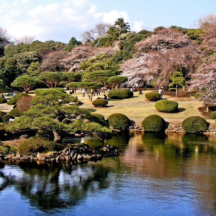 Shinjuku Gyoen is one of the largest and most popular parks in Tokyo. In spring Shinjuku Gyoen becomes one of the best places in the city to see cherry blossoms. Shinjuku Gyoen is located just a short walk from Shinjuku Station, the paid park's spacious lawns, meandering walking paths and tranquil scenery provide a relaxing escape from the busy urban center around it. | |