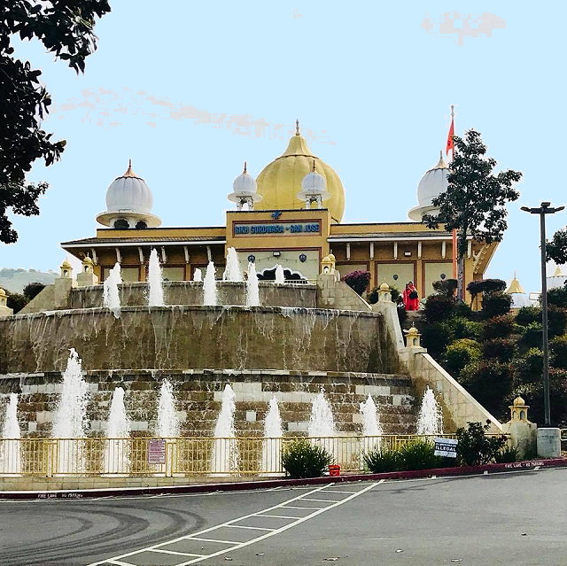 | The Sikh Gurdwara Sahib in San Jose, California, is one of the largest Sikh temples (Gurdwaras) in North America and a significant landmark for the Sikh community in the region. Situated on a hill in Evergreen Valley, the Gurdwara provides stunning views of San Jose and the surrounding areas. | |