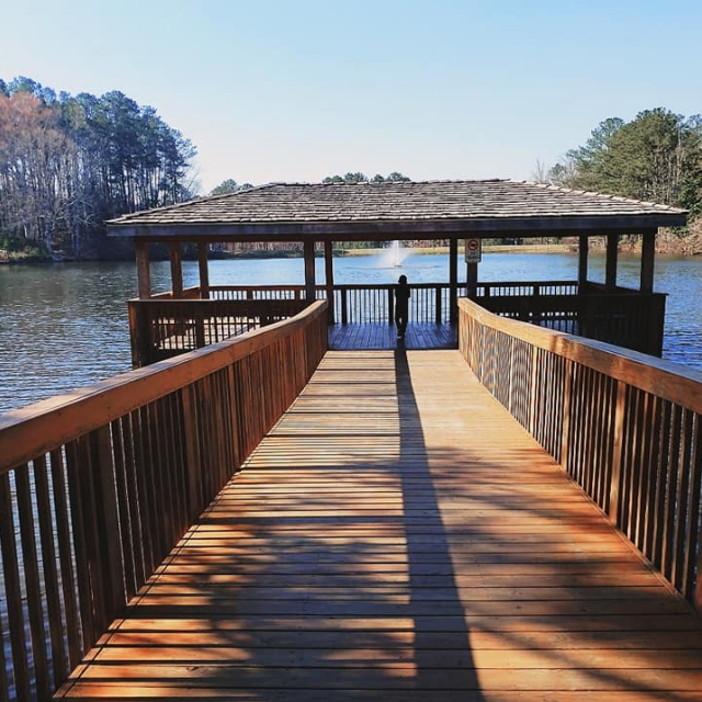 | Sims Lake Park features a 7-acre lake and a 1.2 mile moderately trafficked loop trail in Suwanee, Georgia. | |