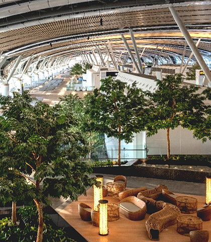 | Suvarnabhumi Airport is the main international airport serving Bangkok, the capital city of Thailand. Located mostly in Racha Thewa commune, Bang Phli district, Samut Prakan province, it covers an area of 3,240 ha (32.4 km2; 8,000 acres), making it one of the biggest international airports in Southeast Asia and a regional hub for aviation. | |