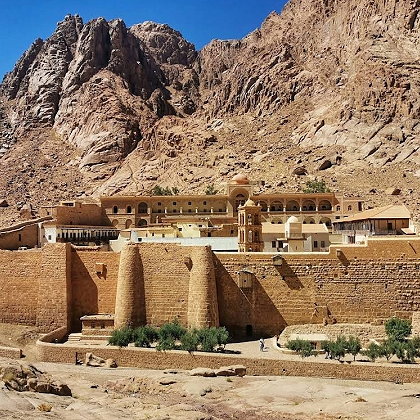 | The Greek Orthodox monastery of the God-trodden Mount Sinai is located at the very place where God appeared to Moses in the Burning Bush, beneath the Mount of the Decalogue. In the providence of God, it is at this site also that the holy relics of Saint Catherine are enshrined. This is the oldest continuously inhabited Christian monastery, with a history that can be traced back over seventeen centuries. The monastery predates the divisions of the Christian world, its origins extending to late antiquity. | |