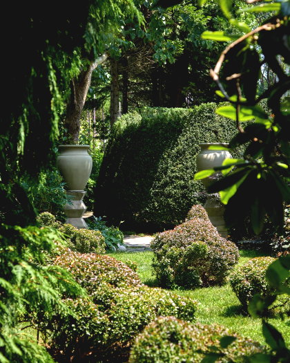 | Sakonnet began in the mid 1970’s as a small clearing deep within a natural tangle of Autumn Olives, Oriental Bittersweet and local Arrowwood Viburnums. Now larger than an acre, its labyrinth of spaces are carved organically out of the original thicket. Each outdoor room reflects the owner’s ongoing experiments with lighting, space, color mixing, collecting and growing wonderful plants. | |