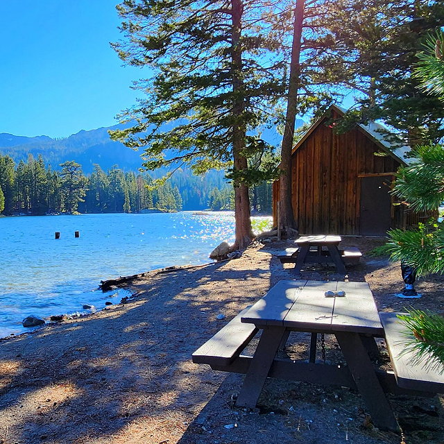| The campground is located along Highway 88 (Carson Pass Highway) and sits at an elevation of approximately 7,200 feet. It is in Amador County, close to the town of Pioneer, and a short distance from Kirkwood and Caples Lake. Silver Lake itself is surrounded by alpine scenery, including forests, granite peaks, and the Mokelumne Wilderness area. Campsites: Silver Lake West has around 60 campsites that can accommodate tents, trailers, and RVs. Each site has a picnic table and fire ring, and there are restroom facilities with vault toilets available. There are no hookups for RVs, but potable water is available. | |