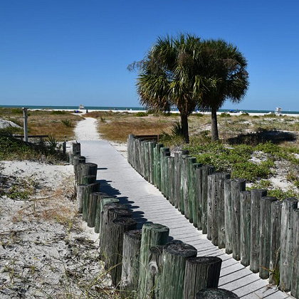 | Sand Key Park is 95 acres with two distinct areas of beach and park in Clearwater. This park has a white sandy beach with seasonal lifeguards and sea turtles that nest from April – October. The park also provides benches for viewing the salt marsh that sustains the native wildlife and offers amenities like picnic shelters, playgrounds, a dog park, and nature trails. | |