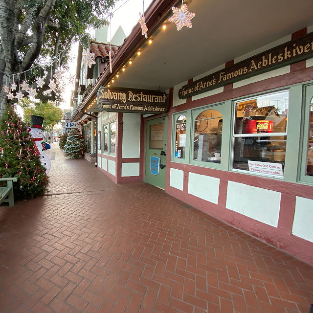 | The Solvang Restaurant, located in the heart of downtown Solvang at 1672 Copenhagen Drive, is home to Arne’s Famous Aebleskiver, as well as serving traditional Danish and American Food. Traditionally Aebleskiver are served during the Christmas and Easter holidays in Denmark. They are served with raspberry jam and a dusting of powdered sugar. | |