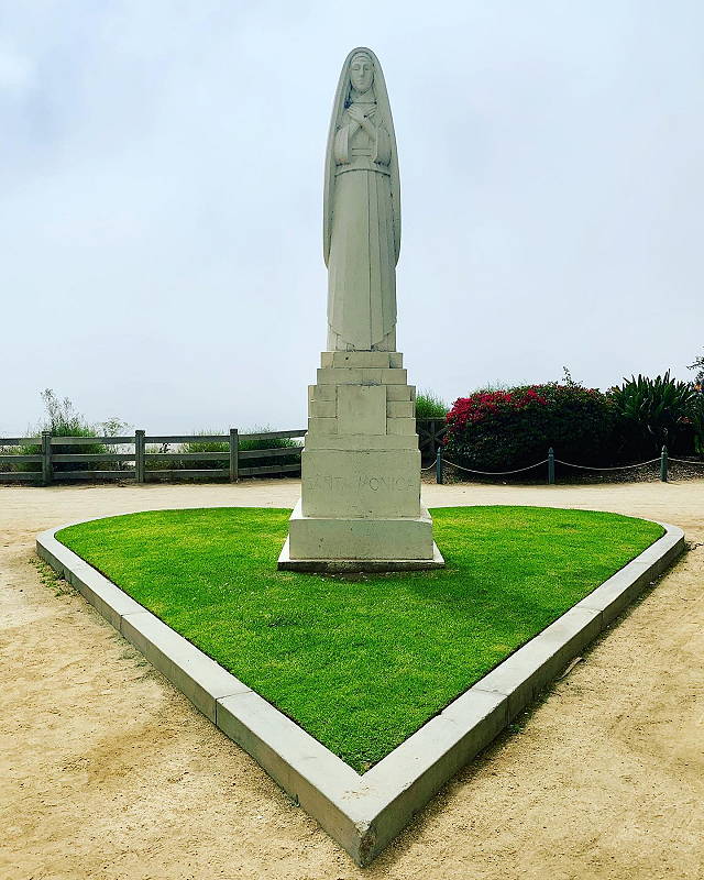 | Palisades Park is a beautiful oceanfront park situated along the bluffs overlooking the Pacific Ocean in Santa Monica. It stretches for about 26 acres and runs parallel to Ocean Avenue, between Colorado Avenue and San Vicente Boulevard. It contained a Statue Santa Monica that is a 8-foot high concrete statue, mounted on a 6-foot by 6-foot stepped concrete pedestal. | |