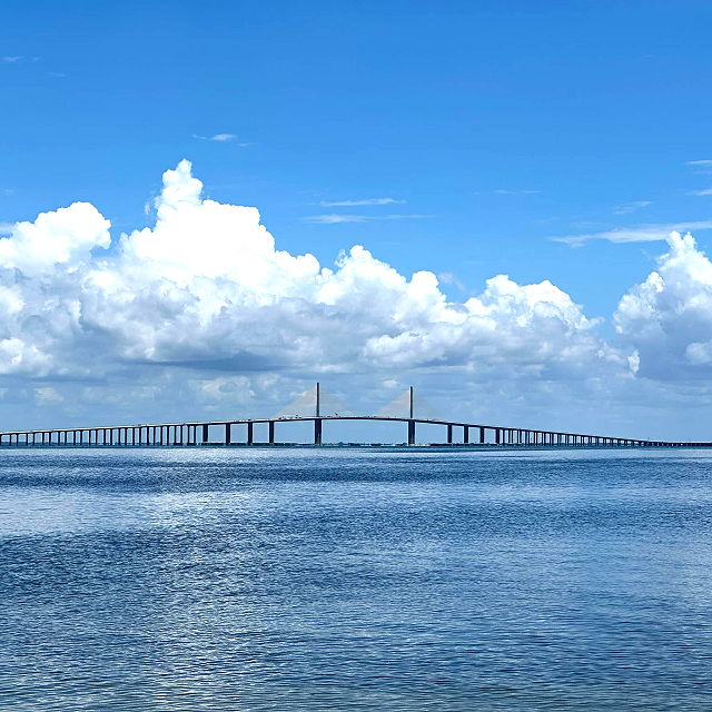 | - Location: The bridge spans Tampa Bay, connecting St. Petersburg on the western shore with Terra Ceia on the eastern shore. - Type of Bridge: The Sunshine Skyway Bridge is a cable-stayed bridge, characterized by its towering support towers and cables that support the bridge deck. - Original Bridge and Replacement: The current Sunshine Skyway Bridge is the second bridge of its kind at this location. The original bridge, which was a cantilever bridge, was completed in 1954. However, a tragic incident occurred on May 9, 1980, when a freighter collided with a support pier during a storm, causing a section of the bridge to collapse. The current cable-stayed bridge was completed in 1987 to replace the damaged structure. - Design and Features: The current bridge is known for its distinctive design, featuring a 1,200-foot main span and two 431-foot-tall concrete pylons that support the main span. The bridge has a total length of 21,877 feet. - Scenic Views: The Sunshine Skyway Bridge offers stunning views of Tampa Bay and the surrounding areas. It has become an iconic symbol of the region. - Fishing Piers: The bridge is equipped with fishing piers on both the north and south sides. These piers are popular spots for fishing enthusiasts. - Toll Bridge: The Sunshine Skyway Bridge is a tolled bridge, and the toll is collected for vehicles traveling northbound. The toll helps fund the maintenance and operation of the bridge. - Recreation Areas: There are recreational areas and parks near the bridge, providing opportunities for picnicking, fishing, and enjoying the scenic beauty of the bay. | |