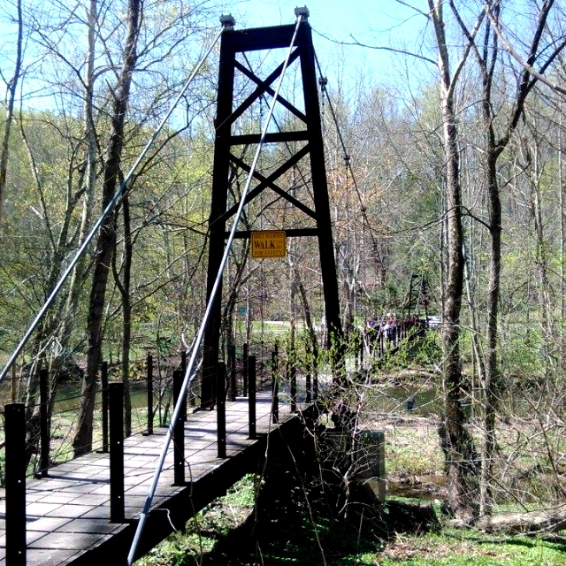 | The Patapsco Swinging Bridge is located in the Avalon/Orange Grove area of Patapsco Valley State Park in central Maryland. It is a suspension bridge consisting of a wooden deck supported by large cables. | |