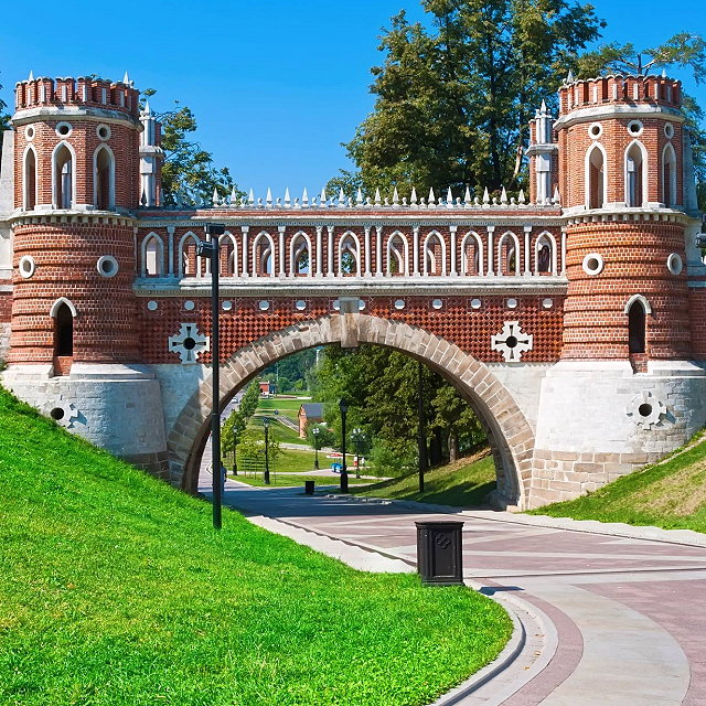 | The Tsaritsyno Museum-Reserve in Moscow, Russia, is a magnificent historical and architectural complex that serves as one of the city's most prominent cultural landmarks. It combines the grandeur of Imperial Russia with sprawling landscapes, art exhibitions, and a rich historical backdrop. The park spans over 400 hectares, featuring beautifully landscaped grounds, serene ponds, and walking paths. | |